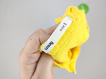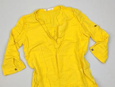 Bluzka damska Sinsay, rozmiar M - Kolor: intensywny żółty - Fason: taliowana, z lekko rozkloszowanym dołem - Dekolt: w kształcie litery V - Zapięcie: rząd ozdobnych guzików z perełkowymi aplikacja...