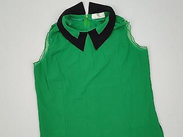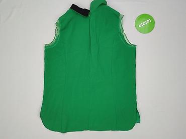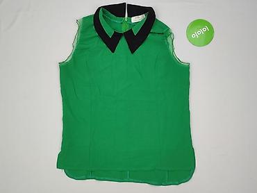Bluzka damska bez rękawów w intensywnie zielonym kolorze. - Fason: prosty, lekko luźny; okrągły dekolt z przodu - Rękawy: krótkie skrzydełka z falbaną - Tył: głęboki dekolt w kształcie litery V z ...
