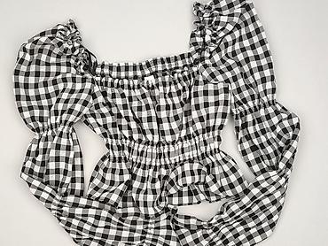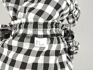 Bluzka damska C&A - Wzór: czarno-biała kratka (gingham) - Fason: luźny, prosty korpus - Dekolt: kwadratowy z falbanką oraz troczkami do zawiązania - Rękawy: długie, zakończone elastycznymi mankiet...