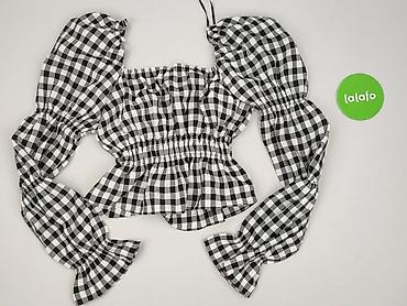 Elegancka damska bluzka w czarno-białą kratkę gingham, idealna na wiele okazji. Bluzka posiada bufiaste rękawy 3/4, które dodają jej stylu i swobody. Dekolt typu Carmen, z gumką, umożliwia noszenie...Stan: