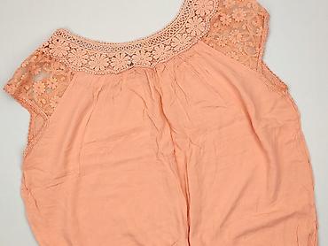 Bluzka damska z krótkim rękawem, w kolorze łososiowym/brzoskwiniowym. - Krój luźny, z obniżoną linią ramion (kimono/cap sleeves) – wygodna i przewiewna. - Dekolt w kształcie U z krótką listwą na 2...