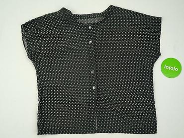 Bluzka damska w kropki - Kolor: czarny z białym wzorem w nieregularne kropki - Krój: luźny, lekko rozkloszowany, z marszczeniami z przodu - Rękaw: krótki - Dekolt: kwadratowy - Wykończenia: białe ...Stan: