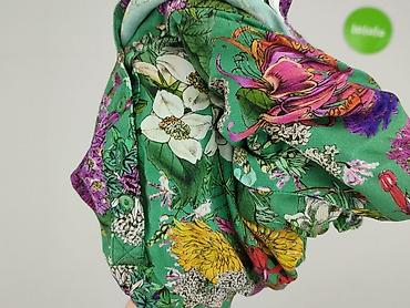 - Wzór: intensywny, botaniczny print na zielonym tle (kwiaty w odcieniach fioletu, żółci, bieli, czerwieni)