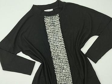 Bluzka damska Latynka L/XL - Kolor: czarny - Krój: luźniejszy, z opuszczoną linią ramion; dekolt łódkowy; rękaw 3/4 - Front: trzy poziome panele – dwa z ażurowej koronki w kolorze ecru oraz jeden ...Stan: