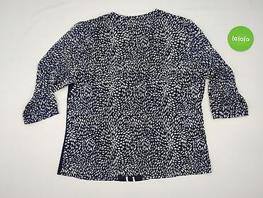 Bluzka damska Bialcon, rozmiar 46 - Krój: luźniejszy, z delikatnie wydłużonym tyłem (lekko zaokrąglony dół). - Rękawy: 3/4 z ozdobnym marszczeniem i wiązaniami przy mankietach. - Dekolt: okrągły. ...
