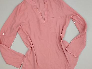 Bluzka damska Sinsay, rozmiar M - Kolor: pudrowy róż - Fason: luźny, z dekoltem w kształcie litery V - Zapięcie: listwa na guziki z przodu (ukryta plisa) - Rękawy długie z mankietami zapinanymi na...