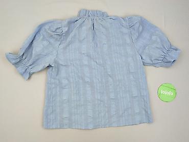 Bluzka damska HOUSE, rozmiar L - Fason: lekko luźny, kobiecy krój z falbanami biegnącymi wzdłuż przodu i na ramionach - Wzór: drobna kwiatowa łączka na niebieskim tle - Rękawy: długie, zakończone ...