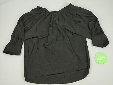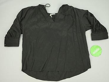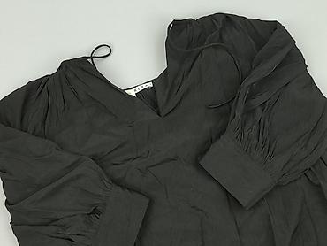 Czarna damska bluzka z długim rękawem - Krój: luźny, z delikatnie wydłużonym tyłem i zaokrąglonym dołem - Dekolt: w serek ze stójką; zapięcie na listwę z 5 metalicznymi guzikami - Kieszeń: jedna n...Stan: