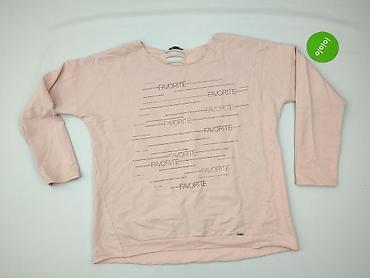 Damska bluzka z długim rękawem, jasnoróżowa/jasnobeżowa, z nadrukiem tekstu na przodzie. - Krój: luźniejszy, zaokrąglony dekolt, lekko wydłużony tył - Materiał: 95% bawełna, 5% elastan – miękka, e...
