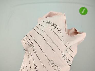 Bluzka damska F.MODA, rozmiar XL - Kolor: jasny pudrowy róż - Fason: dłuższa, lekko oversize; rękaw 3/4 - Przód: złoty, metaliczny nadruk z napisem - Dół: przedłużane panele po bokach zapinane na ...