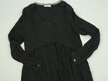Bluzka damska z długim rękawem, czarna, z koronkowym wykończeniem u dołu. - Krój: lekko rozkloszowany dół, półokrągły dekolt, asymetryczne wycięcie z koronką na brzegu (z przodu i z tyłu). - Rękaw...