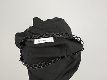 Czarna bluzka damska z ozdobnym panelem z przodu - Rozmiar: M (EUR/US/CA/MX – M) - Fason: luźniejszy, lekko wydłużony tył, rękaw 3/4 - Dekolt: łódka z subtelną lamówką; z tyłu łezka zapinana na gu...Stan: