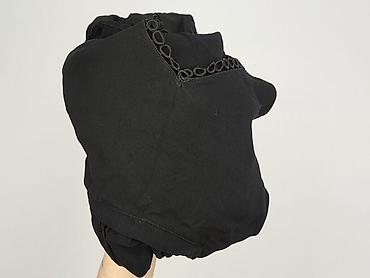 Czarna bluzka damska z ozdobnym panelem z przodu - Rozmiar: M (EUR/US/CA/MX – M) - Fason: luźniejszy, lekko wydłużony tył, rękaw 3/4 - Dekolt: łódka z subtelną lamówką; z tyłu łezka zapinana na gu...