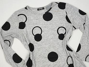 Szara bluzka damska w czarne kropki – ebelieve, rozmiar M/L - Krój: luźny, lekko nietoperzowy z drapowaniem z przodu - Rękawy: krótkie - Dekolt: łagodny, z ozdobnym wycięciem i zapięciem z tyłu - ...