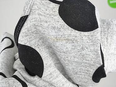- Wzór: duże czarne kropki i okręgi na melanżowej, szarej dzianinie