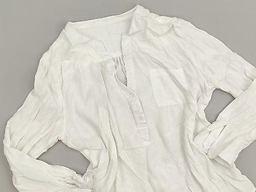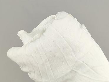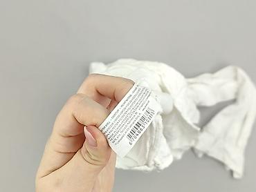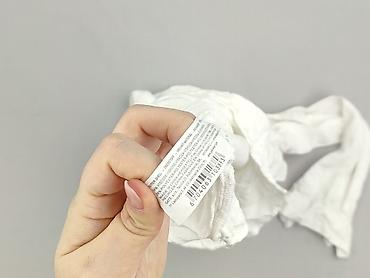 Biała bluzka damska z krótkim rękawem - Fason: luźny, oversize; lekko opadające rękawy - Dekolt: w kształcie litery V z krótką stójką - Materiał: 100% poliester (metka na zdjęciu) - Rozmiar z metk...