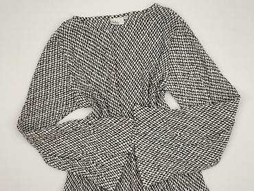 Bluzka damska RESERVED, rozmiar S - Krój: prosty, lekko pudełkowy - Rękaw: 3/4 - Dekolt: okrągły - Wzór: drobna pepitka (czarno‑biała z domieszką brązu) - Detale: dwie ozdobne zakładki z przodu za...