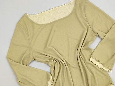 Bluzka damska z długim rękawem, beżowa/ecru - Fason: prosty, lekko zaokrąglony dół - Dekolt: łagodny, szeroki (łódka) - Rękawy: długie - Materiał: miękka, dzianinowa tkanina o drobnym, swetrowym s...