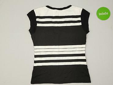 Bluzka damska w paski - Kolor: czarno-białe, wąskie pionowe paski - Krój: luźny, z krótkim rękawem - Dekolt: w kształcie litery V - Rękawy zakończone czarnymi mankietami - Dół lekko zaokrąglony, t...