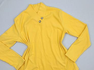 Bluzka damska w intensywnym odcieniu żółci. - Krój: luźny, z dekoltem w kształcie litery V - Zapięcie: na jeden guzik z przodu - Rękawy: 3/4 z szerokim mankietem - Dół: zaokrąglony z przodu i z ty...