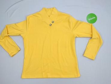 Bluzka damska w intensywnym odcieniu żółci. - Krój: luźny, z dekoltem w kształcie litery V - Zapięcie: na jeden guzik z przodu - Rękawy: 3/4 z szerokim mankietem - Dół: zaokrąglony z przodu i z ty...Stan: