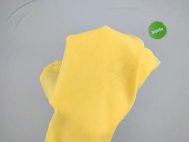 Żółta bluzka damska z krótkim rękawem - Krój: luźny, z obniżoną linią ramion; dekolt w kształcie litery V z ozdobną plisą. - Rozmiar: S (z metki). - Materiał: 95% poliester, 5% spandex – lekko ela...