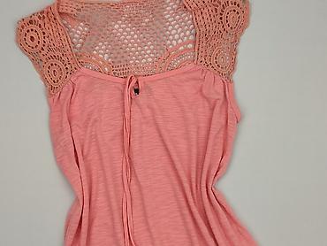 Bluzka/sweterek damski CUBUS AS - Kolor: koralowy - Rozmiar z metki: L - Materiał: 100% bawełna (dzianina prążkowana) - Fason: półdopasowany, z delikatnie bufowanymi, krótkimi rękawami - Dekolt: o...