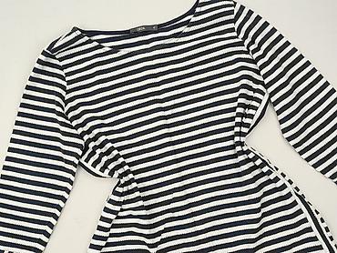 Bluzka damska CECIL - Rozmiar z metki: M - Kolor: biały w niebieskie, pionowe paski o różnej grubości - Fason: luźny, tunikowy - Dekolt: w kształcie litery V bez kołnierzyka - Rękawy: 3/4, zakończ...