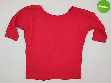 Czerwona bluzka damska, rozmiar 38. - Fason: luźny, z krótkim rękawem typu kimono/dolman - Dekolt: okrągły - Zapięcie: rząd ozdobnych guzików z tyłu - Dół: szeroki, elastyczny ściągacz - Materiał:...