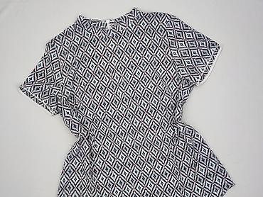 Bluzka damska Blue, rozmiar 40. - Krój: luźny, z krótkim rękawem, okrągły dekolt - Wzór: etniczne/geometryczne motywy w pasy; góra w drobne okręgi w odcieniach granatu i szarości, dół z kolorowymi...