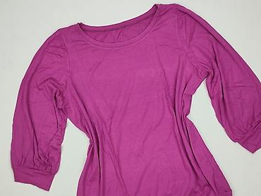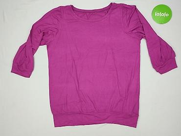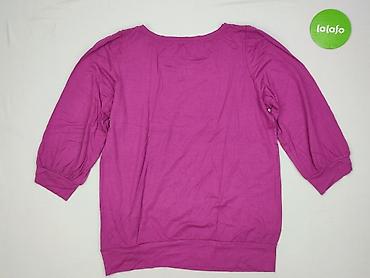 Bluzka damska w kolorze intensywnego fuksji. - Krój: luźny, z marszczeniem pod dekoltem - Dekolt: szeroki, zaokrąglony - Rękaw: do łokcia - Rozmiar z metki: M - Skład materiału: 96% wiskoza, 4% el...