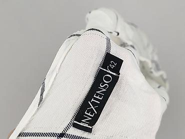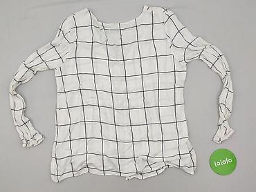 Biała bluzka damska z półprzezroczystym, tłoczonym wzorem - Rozmiar z metki: 42 - Skład: 65% poliester, 35% bawełna - Krój: luźny, lekko rozszerzany ku dołowi - Rękawy: 3/4 z mankietami zapinanymi...