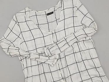 Bluzka damska Usi Poznań - Kolor: biały z drobnym wzorem w szare kwadraciki - Krój: lekko taliowana, krótki rękaw - Dekolt: w kształcie litery V - Dół z rozcięciami po bokach (przód i tył) - Mater...