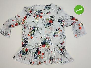 Bluzka damska z długim rękawem, wzór w drobne kwiaty na ciemnym tle. - Krój: lekko skrócony (crop), prosta linia, okrągły dekolt - Rękaw: długi, klasyczny - Materiał: 100% poliester – lekki, gładk...Stan: