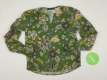 Bluzka damska Reserved - Rozmiar: EU 38 (UK 10) - Fason: luźna bluzka z dekoltem w serek - Rękaw: do łokcia, lekko bufiany z marszczeniami - Wzór: intensywny, botaniczny print na zielonym tle (kwi...