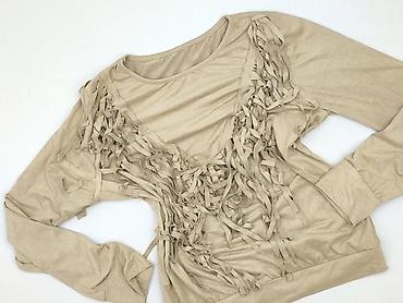 Bluzka damska z długim rękawem, beżowa/piaskowa. - Krój: lekko rozszerzany ku dołowi, swobodny - Dekolt: łódka - Materiał: miękka dzianina u góry i na rękawach; przód oraz dół wykończone koronką o...