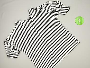 Damska bluzka w paski - Krój: luźny, z obniżoną linią ramion i krótkim rękawem - Dekolt: głęboki w kształcie litery V z podwójną listwą - Wzór: poziome paski w odcieniach granatu i ecru - Materiał...