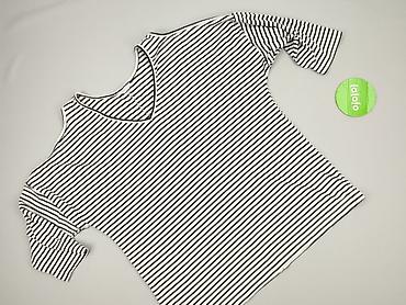 Damska bluzka w paski - Krój: luźny, z obniżoną linią ramion i krótkim rękawem - Dekolt: głęboki w kształcie litery V z podwójną listwą - Wzór: poziome paski w odcieniach granatu i ecru - Materiał...Stan: