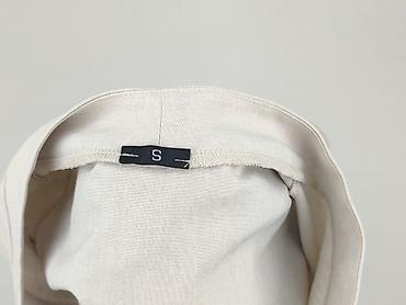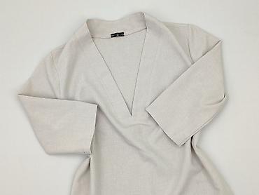 Bluzka damska WOMEN, rozmiar 36. - Kolor: ecru/śmietanowy z granatowym, roślinnym nadrukiem. - Krój: lekko przedłużany tył, swobodna linia, delikatnie marszczona. - Dekolt: V z ozdobnym, kontrastow...