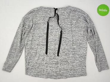 Szara bluzka damska z długim rękawem, CALM & CASUAL, rozmiar L. - Kolor: jasny szary melanż - Fason: luźny, lekko dłuższy tył, okrągły dekolt - Rękaw: długi - Ozdoba: szeroki, czarny pas z koronko...