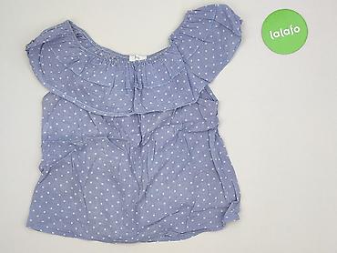 Bluzka damska Made in Italy w grochy - Kolor: błękitny (baby blue) z dużymi białymi kropkami - Krój: luźny, oversize; odcięcie pod biustem z marszczeniem, dół lekko zaokrąglony - Rękawy: krótkie, ...