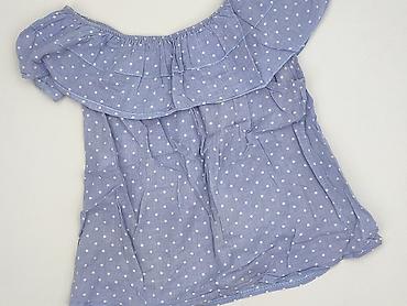 Bluzka damska w paski, hiszpanka - Krój: hiszpanka z odkrytymi ramionami, luźna, prosta linia - Wzór: wąskie, pionowe paski w kolorze kobaltowym na białym tle - Dekolt: elastyczna gumka pozwalając...