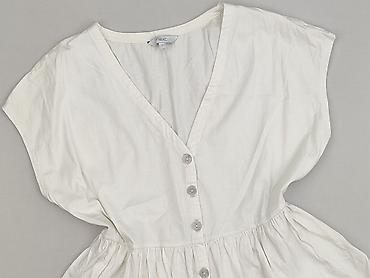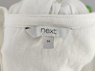 Bluzka damska Next - Kolor: biały - Krój: prosty, lekko wydłużony tył, krótkie rękawy - Dekolt: okrągły - Zapięcie: mały guziczek z tyłu przy dekolcie (pęknięcie łezka) - Materiał: 100% poliester ...
