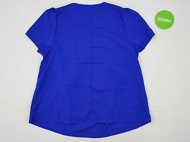 Bluzka damska XL, kobaltowa - Krój: prosty, luźniejszy, z okrągłym dekoltem - Rękawki: krótkie z falbanką - Tkanina: elastyczna, o wyraźnej marszczonej/karbowanej fakturze - Skład: 95% poliester, ...