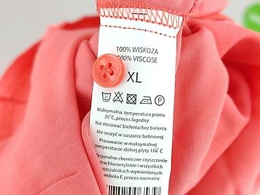 Bluzka damska z krótkim rękawem - Kolor: koralowy - Rozmiar: XL (na metce) - Materiał: 100% wiskoza - Krój: luźny, okrągły dekolt - Detale: mała kieszonka na piersi, lekko falujące rękawki z guzic...