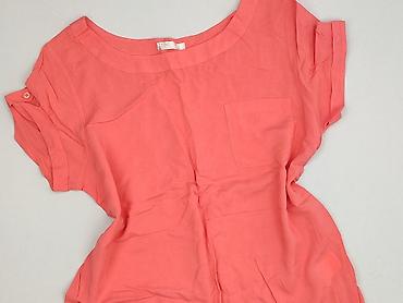 Bluzka damska w kolorze koralowym - Krój: luźny, z opuszczonym ramieniem/krótkim rękawem - Dekolt: okrągły - Materiał: lekka, miękka tkanina (zwiewna, pomarszczona faktura) - Detale: mała kieszonk...