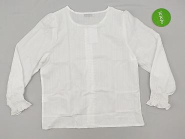 Biała bluzka damska z koronką na ramionach i plecach. - Rozmiar: XXL (widoczne na metce). - Krój: lekko luźny, z okrągłym dekoltem. - Rękawy: 3/4 z mankietem. - Materiał: cienka, przewiewna dzi...