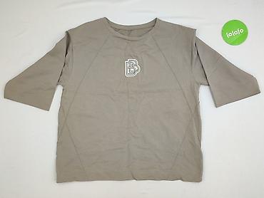 Damska bluzka z półdługim rękawem, kolor beżowo‑taupe. Na piersi naszywka z podwójną literą „B”.