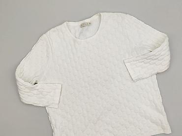 Biała bluzka damska BELoved Woman, rozmiar M. - Krój: luźny, z długim rękawem i okrągłym dekoltem - Ozdoby: subtelne, rozmieszczone na przodzie drobne aplikacje/kamienie, nadające delikatny połysk...
