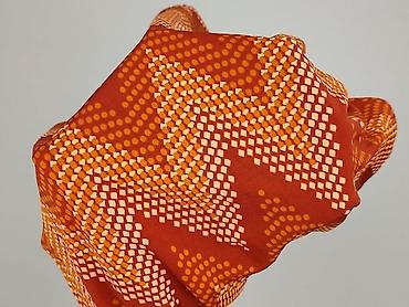 - Wzór: geometryczne zygzaki w odcieniach rdza/oranż/ekri, kropkowe przejścia kolorów